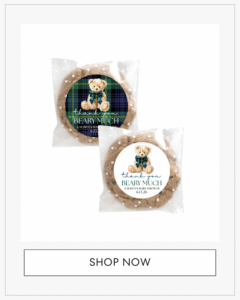 - Preppy Favors & Gifts: Send guests home with mini plaid boxes tied in satin ribbon, personalized Polo-style sugar cookies, or small jars of honey with tartan lids. Add custom “Thank You” tags featuring the bear in a bow tie for a final polished touch.